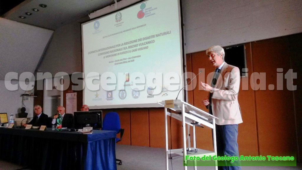 Doverosa l’inaugurazione della giornata da parte del Dr. Francesco PEDUTO, Presidente dell’Ordine dei Geologi della Regione Campania, il quale, dopo i dovuti ringraziamenti all’UNESCO, ha introdotto l’argomento Vesuvio dicendo che il ‘’vulcano napoletano attualmente è il più pericoloso al mondo proprio per il contesto antropico in cui è collocato. Proprio per questo il Vesuvio’’, ha continuato Peduto, ‘’è anche il vulcano più studiato e monitorato al mondo e la categoria dei geologi’’, rappresentata dal Dr. Peduto, ‘’è una categoria viva che vuole dare una mano in quanto sono tra i primi ad essere consapevoli e anche preoccupati del rischio presente.’’