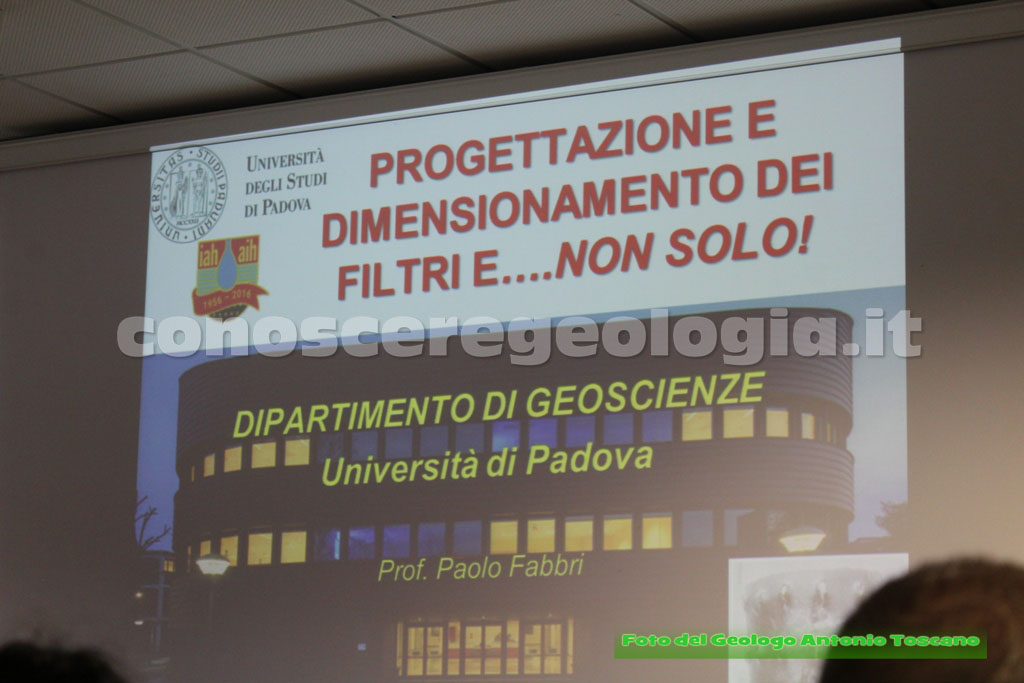 Di seguito è stata la volta del Prof. Paolo Fabbri, docente di Idrogeologia nel Dipartimento di Geoscienze nell’Ateneo di Padova, che ha presentato una relazione sulla progettazione e dimensionamento dei filtri.