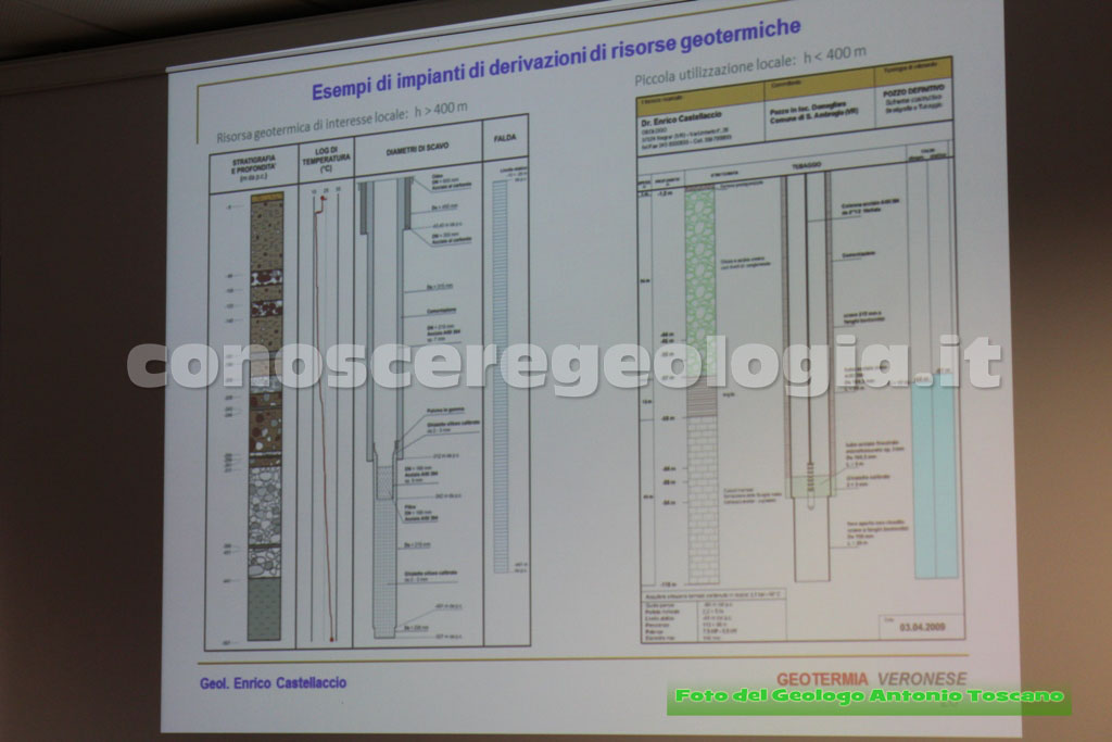 Il Dr. Geol. Enrico Castellaccio, presidente dell’associazione Geotermia Veronese, ha illustrato l’importanza della fonte di energia alternativa fornita dalla geotermia spiegando cosa sono i pozzi di scambio termico ad uso geotermico e termale, con un confronto