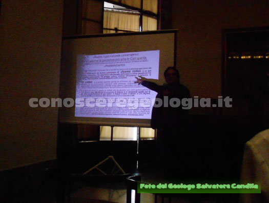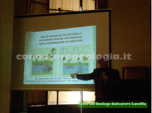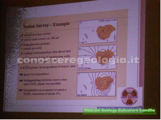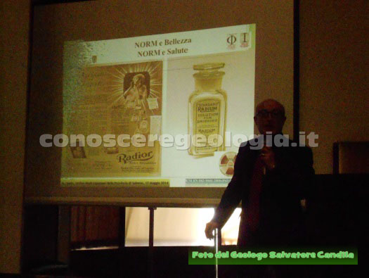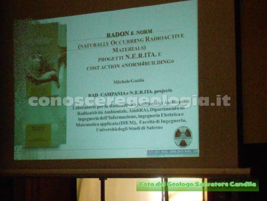 Legato a questo intervento l’Ing. Simona Mancini (dottore di ricerca) ha riferito sulla normativa vigente, mentre a seguire il prof. Michele Guida, fisico, ha illustrato i presenti anche sulle emissioni “non convenzionali”, ovvero legate alla industria estrattiva petrolifera ed all’utilizzo di materiali quali TiO2 e Zr, che possono essere forieri di isotopi radioattivi. Egli ha inoltre ipotizzato anche di possibili metodologie di utilizzo delle emissioni di Rd per la ricerca, non distruttiva, di sorgenti termali sottomarine, come sperimentato nel Golfo di Policastro (SA).