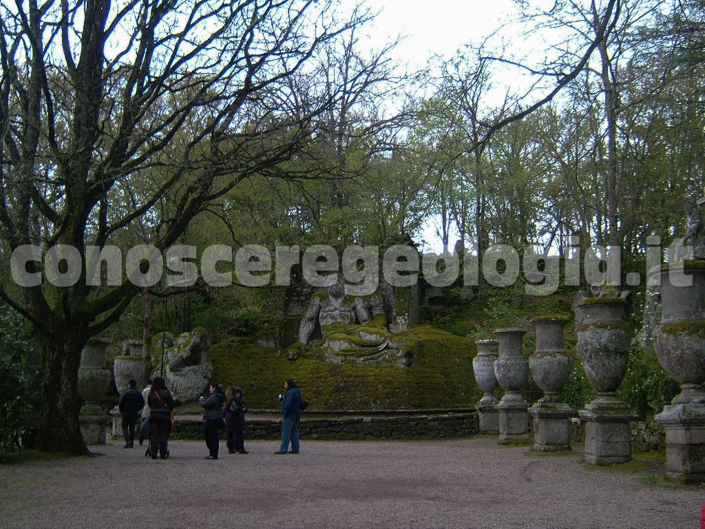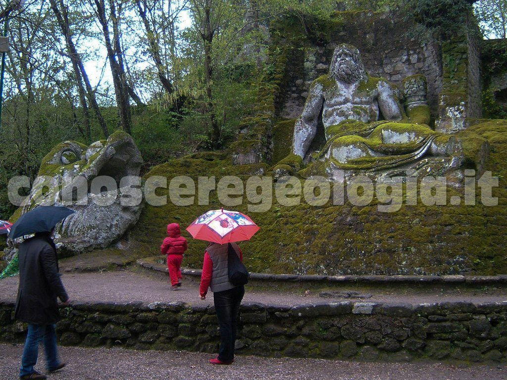Dal punto di vista geomorfologico, invece, l’area del famoso parco dei Mostri corrisponde a un vasto corpo di frana ormai stabilizzato. Dal costone roccioso di ignimbrite sul quale sorge l’abitato di Bomarzo, si sono staccati gli enormi blocchi rocciosi utilizzati per scolpire i ”mostri”.