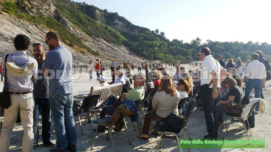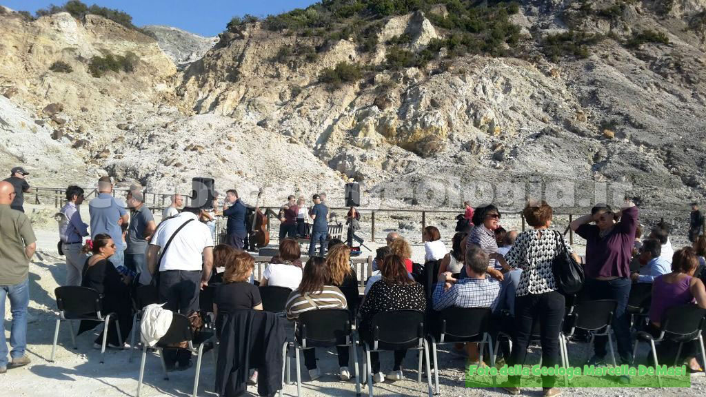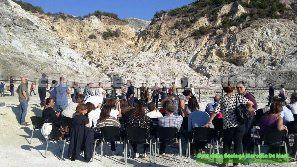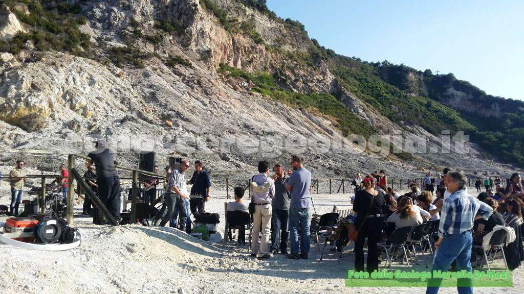 Ieri pomeriggio si è tenuto il tanto atteso evento scientifico-musicale dal titolo ”Canto Flegreo”, Ascoltiamo la Terra”, l’evento durante il quale si è potuto assistere alla fusione dell’arte delle musica con le Scienze della Terra, il tutto in un luogo unico e suggestivo come il cratere della Solfatara di Pozzuoli.