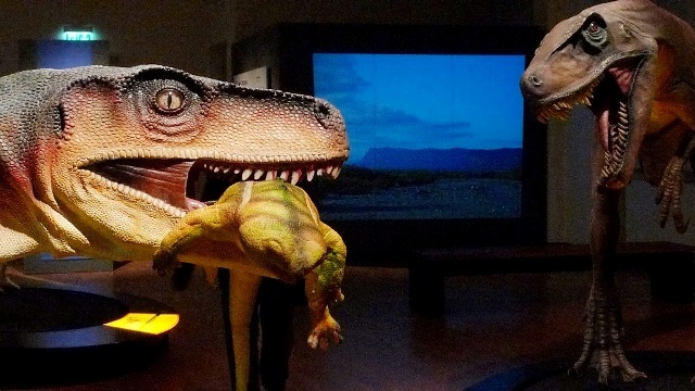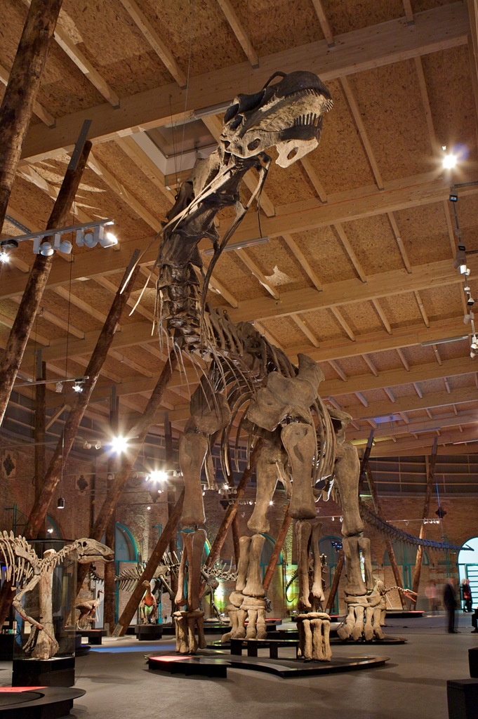 sono esposte le ricostruzioni in dimensioni reali: l’erbivoro più grande del mondo, l’Argentinosaurus huinculensis, che poteva raggiungere i 38 metri di lunghezza, e il più grande carnivoro terrestre finora conosciuto, il Giganotosaurus carolinii, 13 metri di lunghezza per 10 tonnellate, che superava in dimensioni il più famoso Tyrannosaurus rex.