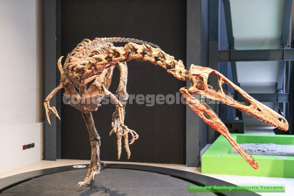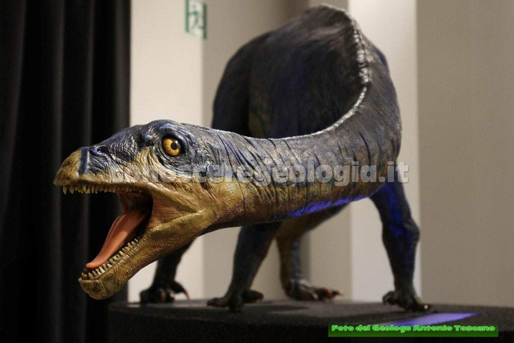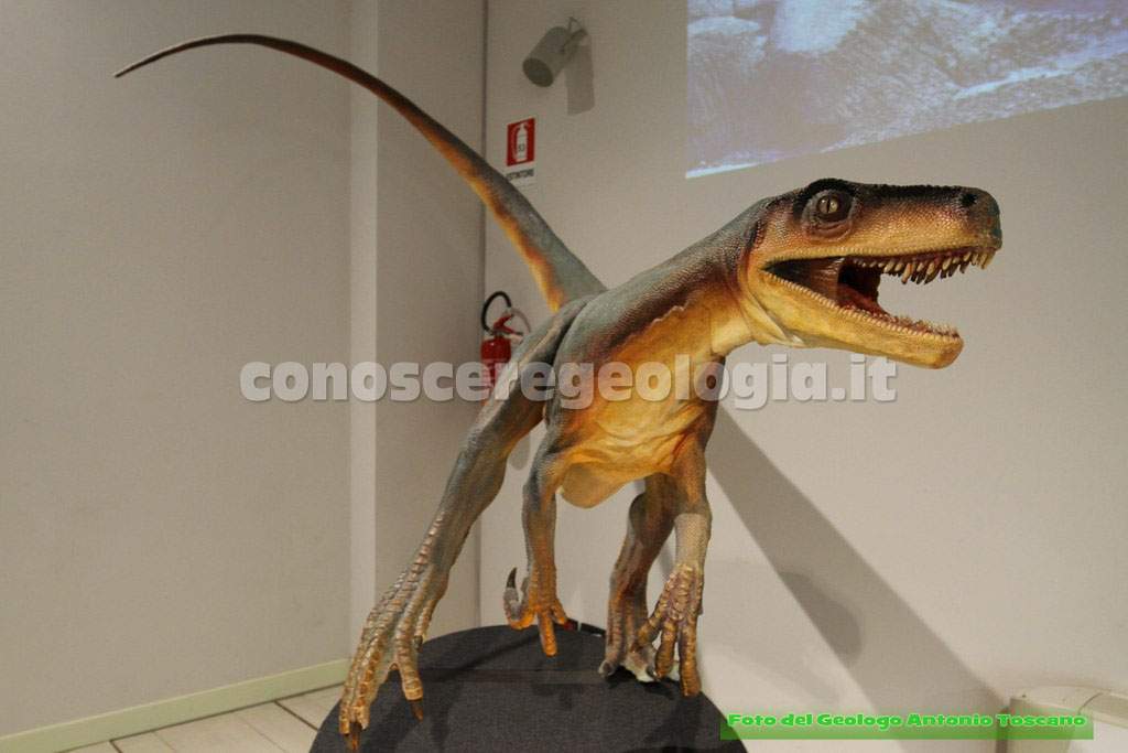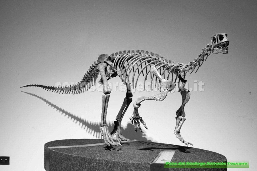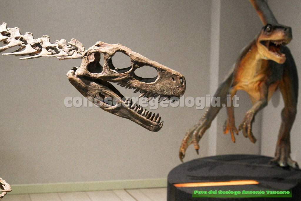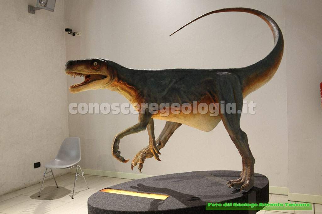 I dinosauri quindi non erano tutti giganti, questo era un carnivoro bipede, con le tipiche zampe che poggiavano a terra con tre dita, un predatore, quindi, che era anche predato da altri dinosauri.