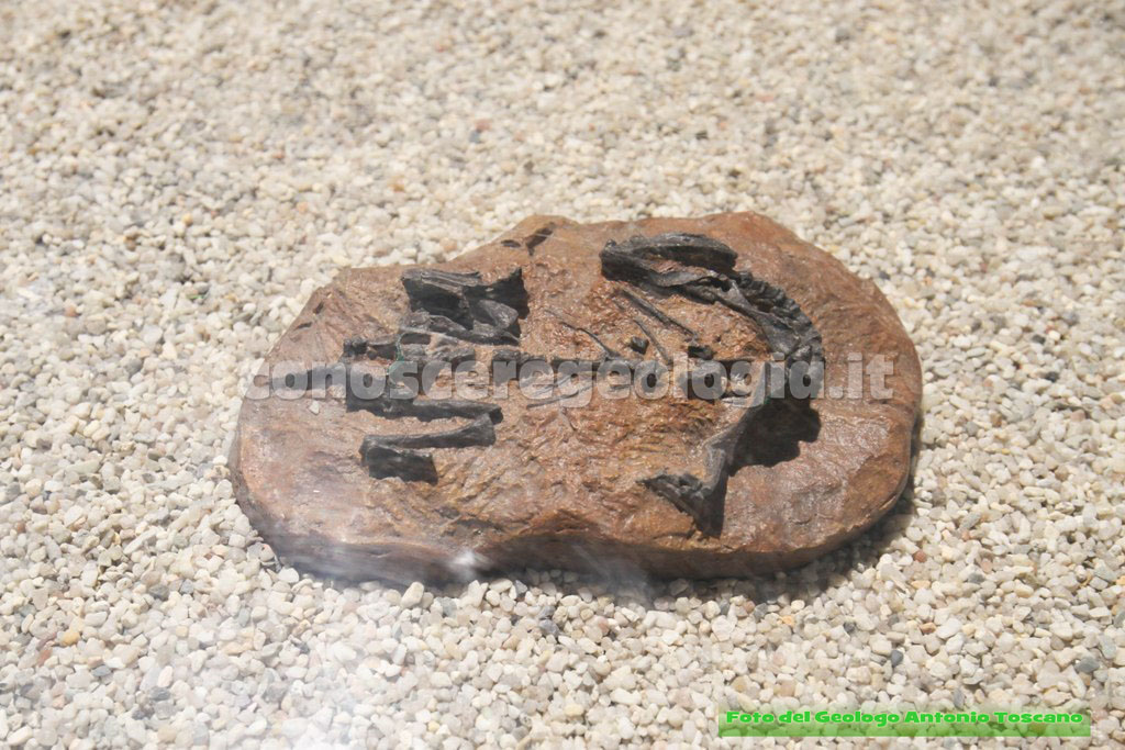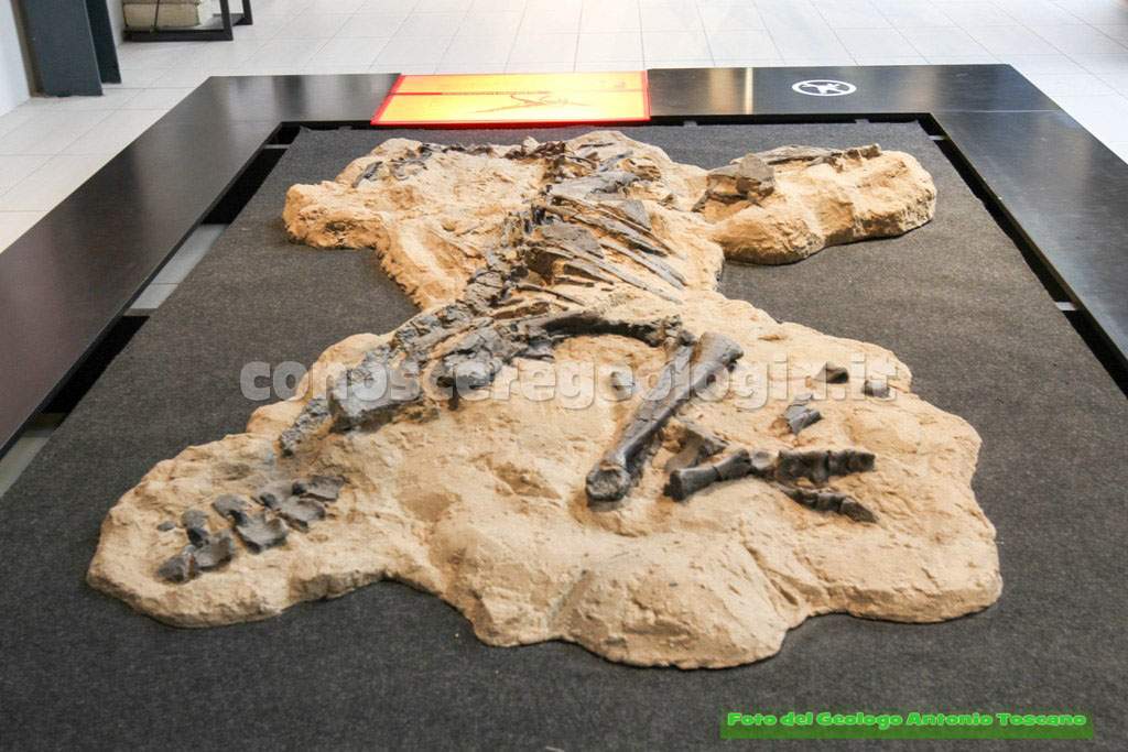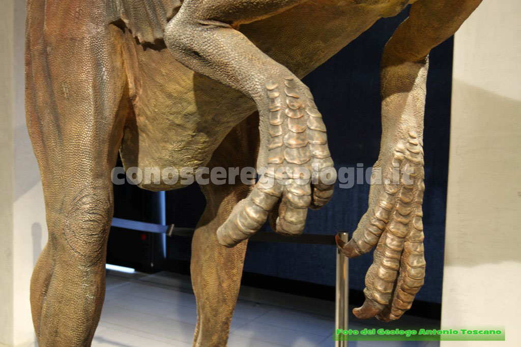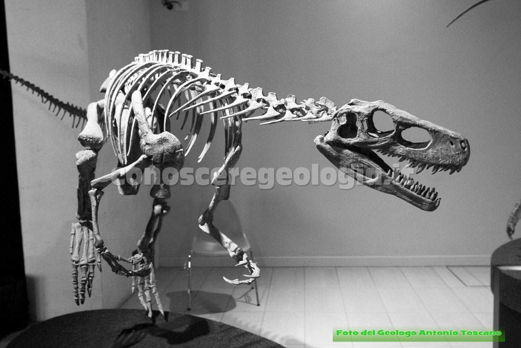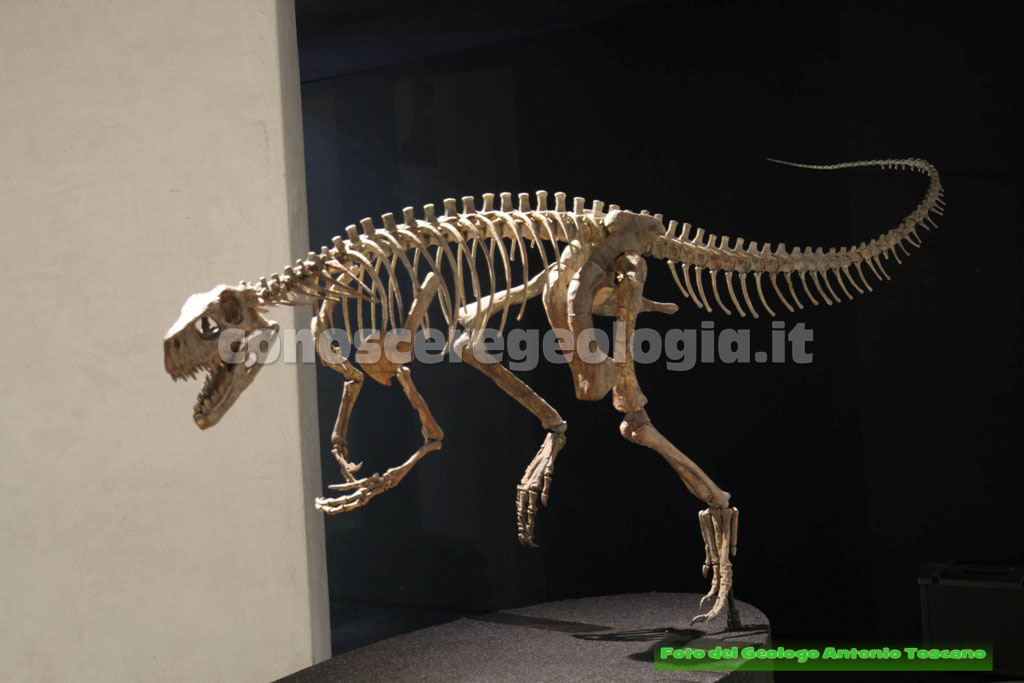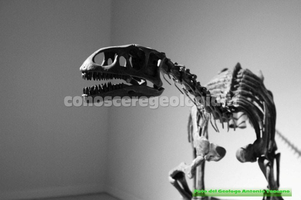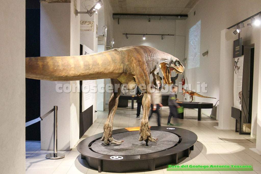 I dinosauri quindi non erano tutti giganti, questo era un carnivoro bipede, con le tipiche zampe che poggiavano a terra con tre dita, un predatore, quindi, che era anche predato da altri dinosauri.