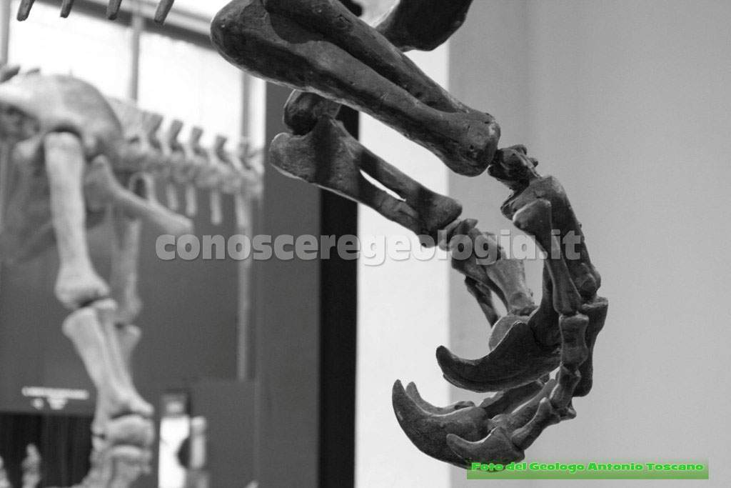 L’ultimo dinosauro esposto in mostra, del Periodo Giurassico, è il Piatnitzkysaurus floresi (Vedi foto 21), un super predatore con zampe a quattro dita di cui ne poggiavano a terra solo tre. Le zampe anteriori sono molto ridotte (Vedi foto 22) rispetto ai predatori più antichi. Questo carnivoro catturava la preda con la testa ma poi se la fermava con le zampe. In questo periodo si nota come la testa dei predatori cominciava ad alleggerirsi, infatti il cranio presentava grandi cavità.