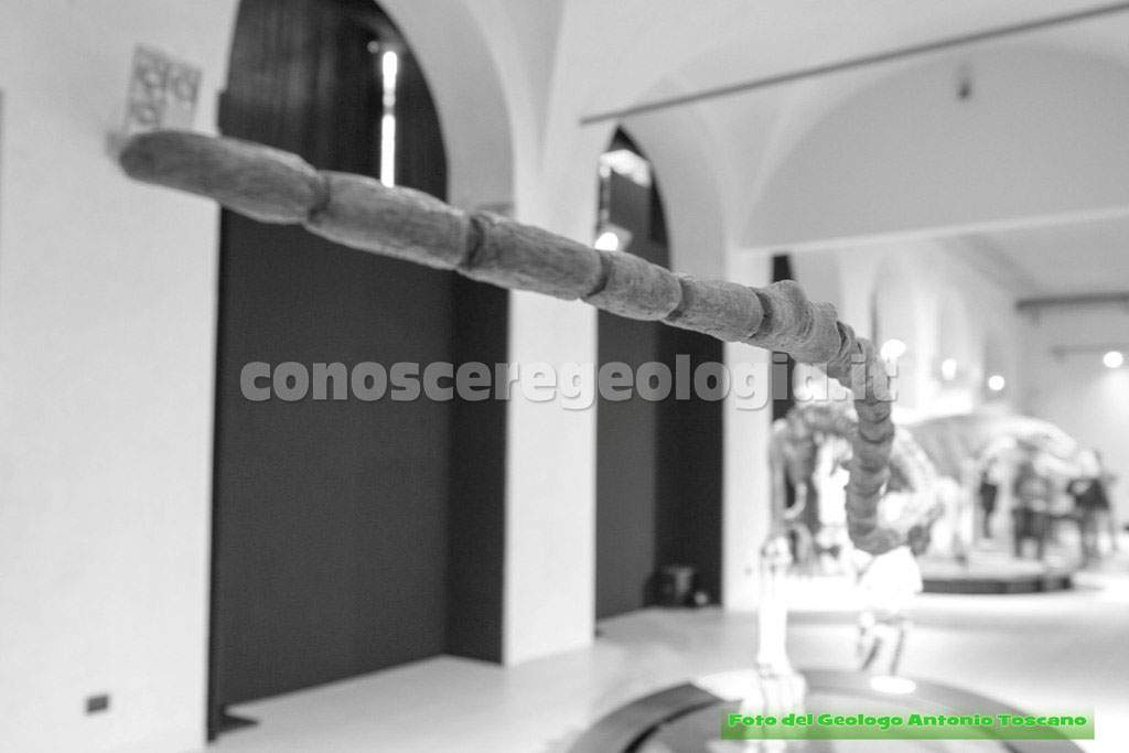 Si passa quindi nella sala del Cretaceo in cui si trovano due esemplari enormi, la preda,  l’Argentinosaurus huinculensis, e il predatore, il Giganotosaurus carolinii (Vedi foto 23).