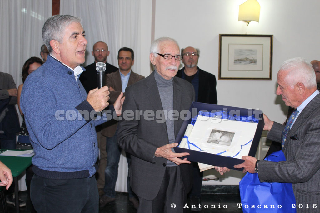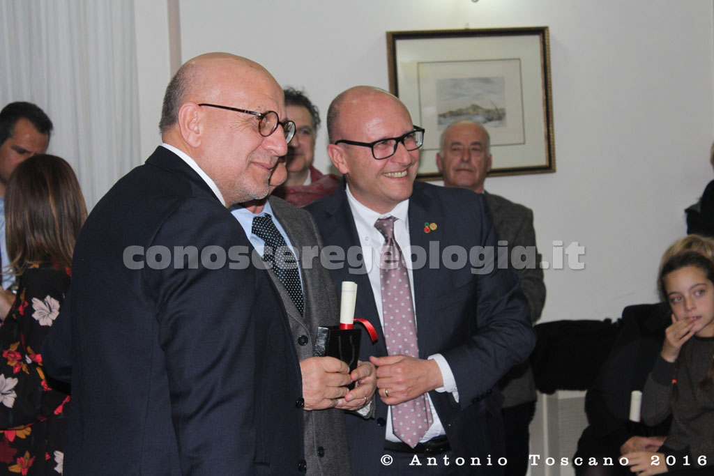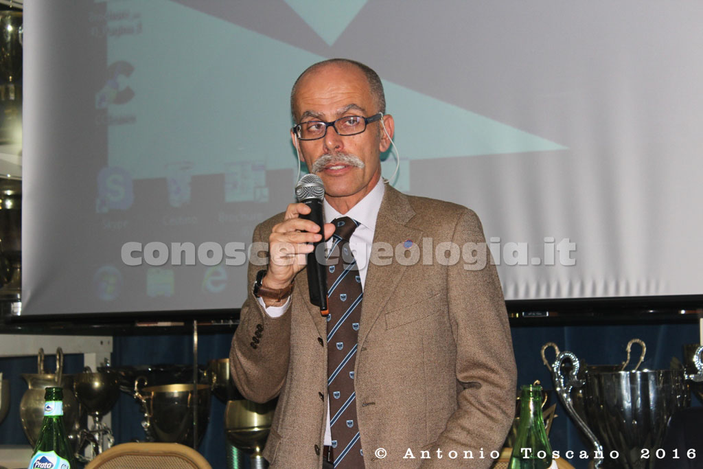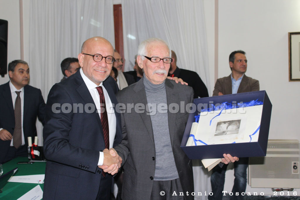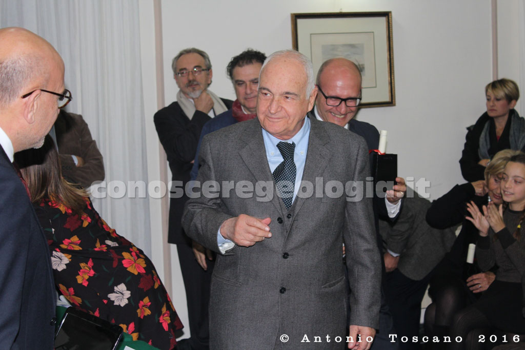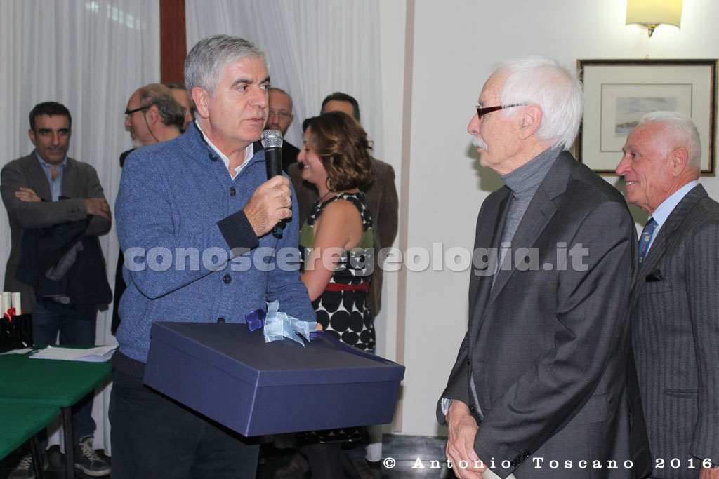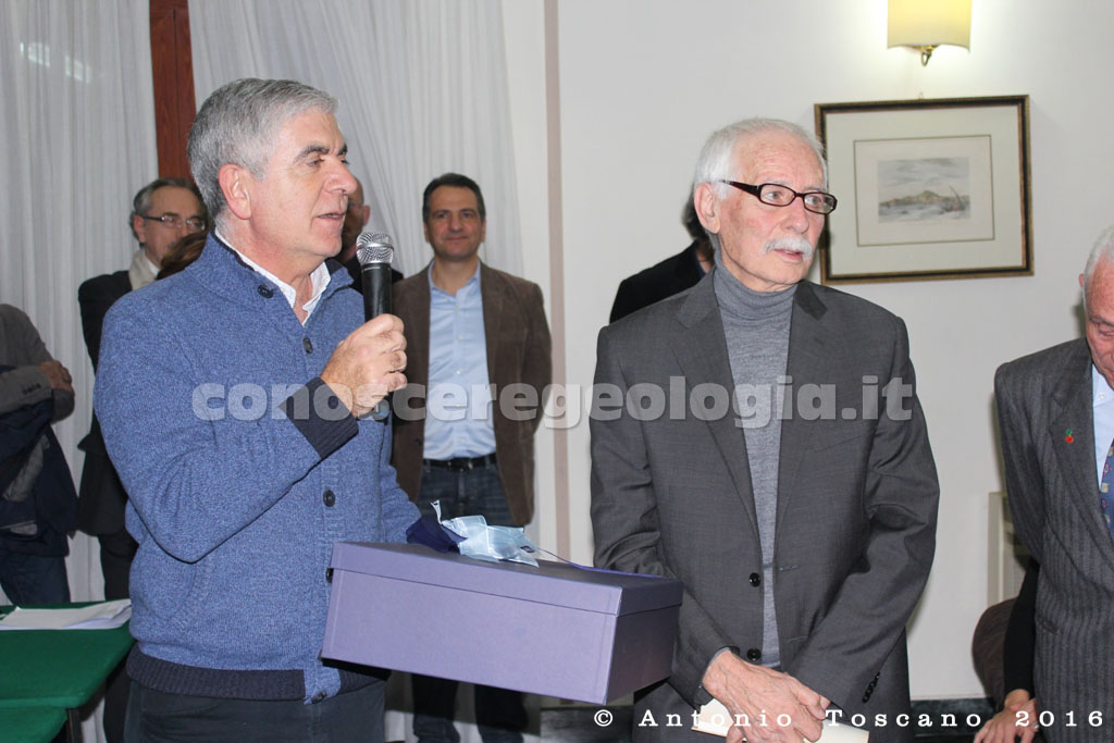 Dopo i dovuti saluti, il Dott. Angelo PESCE, primo laureato in Scienze Geologiche in Campania, ha  dato inizio alla sua LECTIO MAGISTRALIS dal titolo ”L’Evoluzione delle conoscenze geologiche nell’ultimo secolo” e in seguito è stato premiato con una bellissima stampa dell’800 raffigurante il Vesuvio.