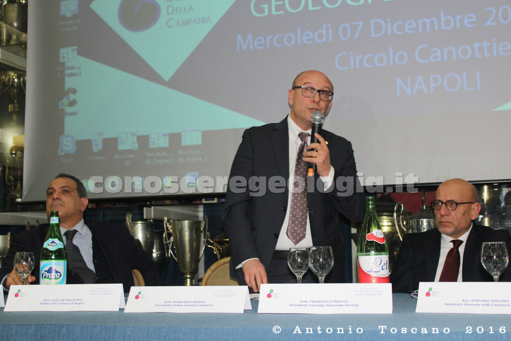 La cerimonia ha visto i saluti di numerose autorità tra cui il Dott. Francesco RUSSO, Presidente Ordine dei Geologi della Campania, il Dott. Francesco PEDUTO, Presidente Consiglio Nazionale dei Geologi, l’Arch. Giuseppe GRIMALDI, Vicario del Segretario Generale Autorità di Bacino Regionale di Campania Sud, il Prof. Domenico CALCATERRA, Direttore del Distar Università degli Studi di Napoli Federico II, il Prof. Vincenzo MORRA, del Distar Università degli Studi di Napoli Federico II.