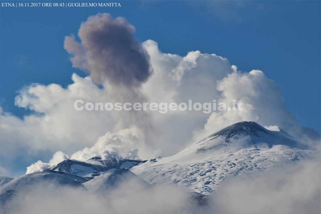 Dopo l’attività effusiva al Cratere di SE, che ebbe fine il 27 aprile 2017 , il vulcano è stato caratterizzato dall’ordinario degassamento alle bocche sommitali. Le emissioni di vapore sono state in particolare a carico del pozzo craterico del 6 agosto 2016, ubicato sull’orlo della Voragine, e alla Bocca Nuova. Il Cratere di Nord-Est ha mostrato invece una debole attività fumarolica sugli orli e nelle pareti interne. Il fondo di esso tuttavia rimaneva occluso fino a qualche giorno fa, quando è stata notata l’apertura di un pozzo sul suo fondo.