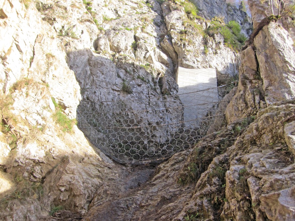 A protezione di cadute di massi e terriccio dal fronte della parete rocciosa, si utilizza quasi sempre, un intervento attivo dato dalla posa in opera di una rete di acciaio zincato a maglie strette, rinforzata da cavi di acciaio zincato disposti a losanga con relativa chiodatura di fissaggio.