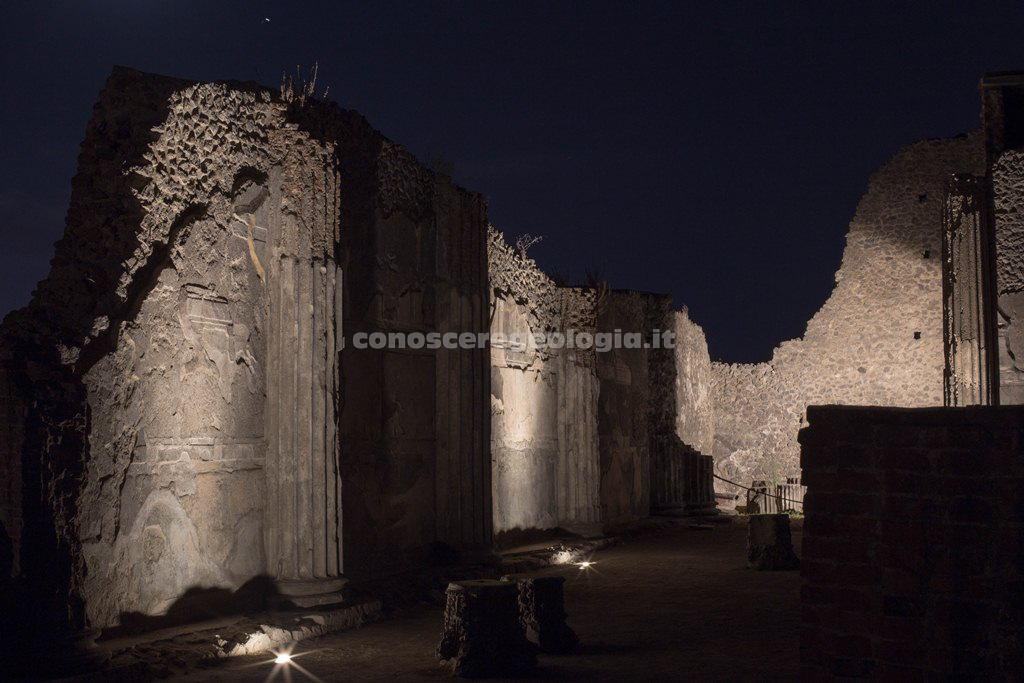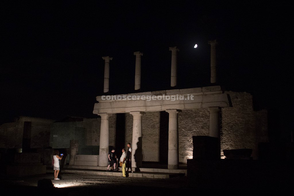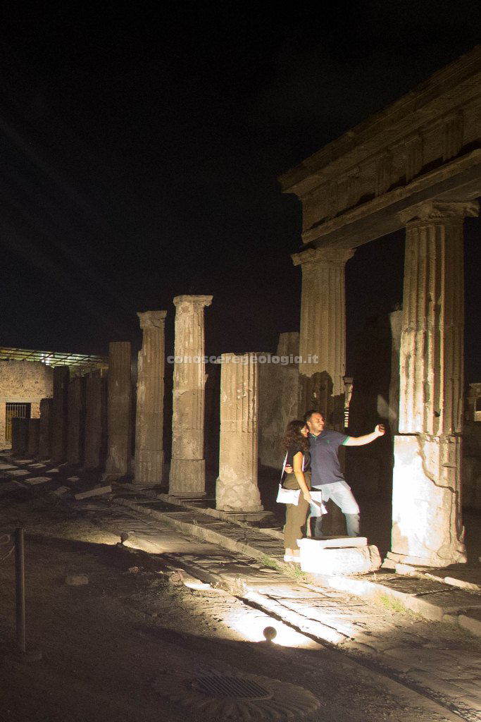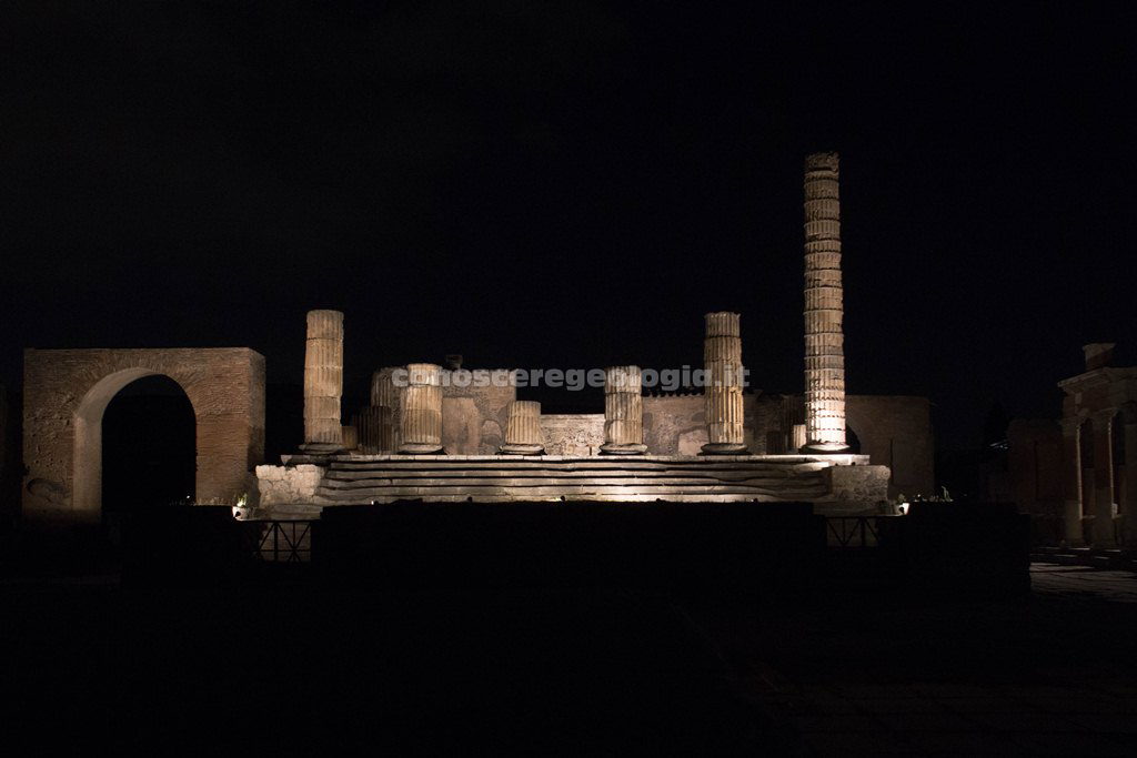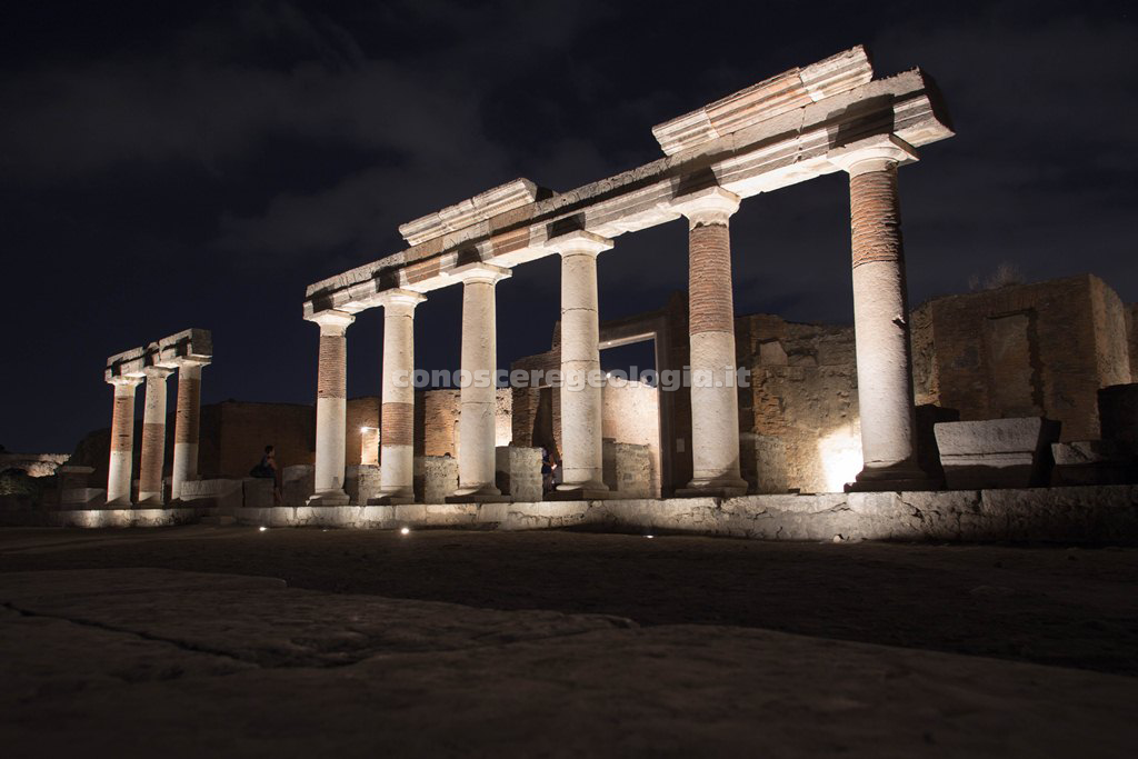 A Pompei le passeggiate notturne interessano uno dei luoghi più monumentali del sito, l’area del Foro, cuore della vita politica, religiosa ed economica della città antica, attraverso un percorso di suoni e luci che ha inizio da porta Marina.